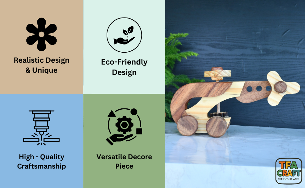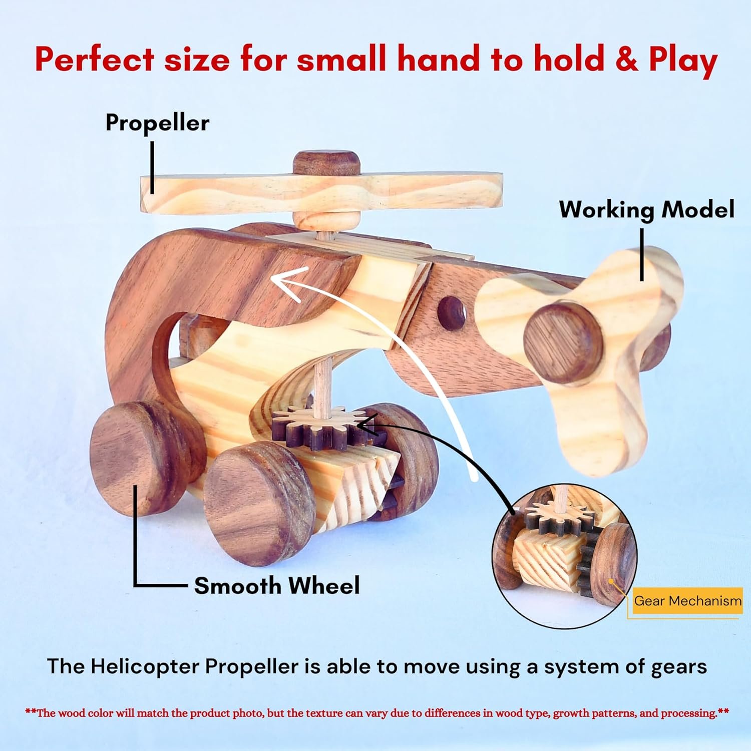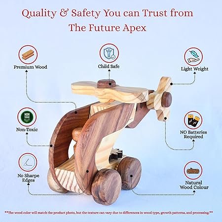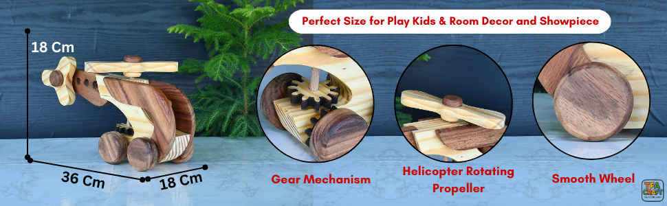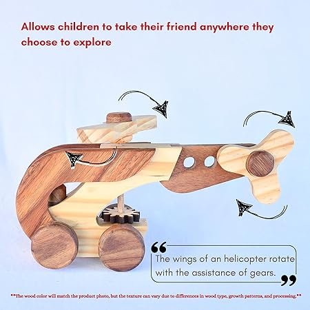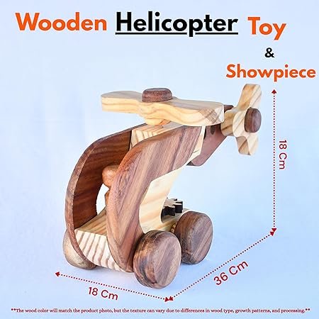 ๐ฟ HANDCRAFTED DESIGN: Beautiful wooden helicopter toy crafted with attention to detail, featuring smooth edges and natural wood finish for an authentic look