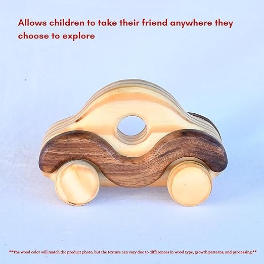 🌿HANDCRAFTED DESIGN: Beautifully crafted wooden car toy with smooth curved edges and natural wood finish, perfect as both a playable toy and decorative showpiece