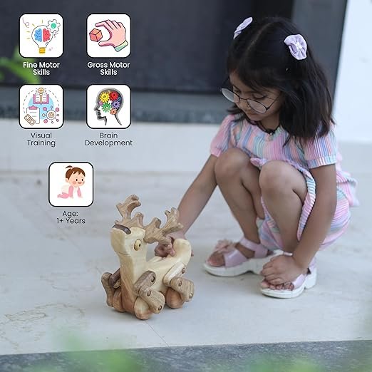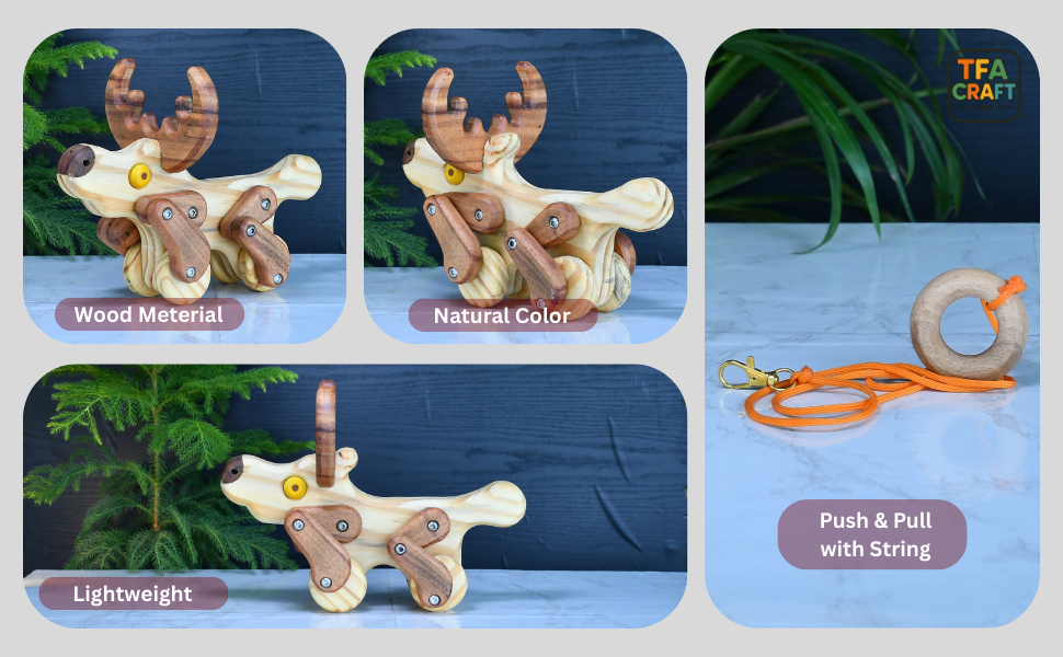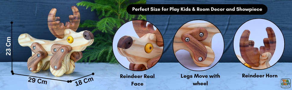 ๐ฟ HANDCRAFTED DESIGN: Beautifully crafted wooden reindeer toy made with natural wood and detailed craftsmanship for an authentic, rustic appearance