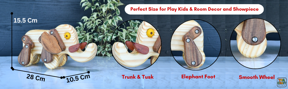 Handcrafted Wooden Elephant Toy On Wheels | Pull Along Play for Toddlers & Kids 9 Months to 8 Years | Decorative Showpiece, Natural Wood Finish, Child-Safe Smooth Edges