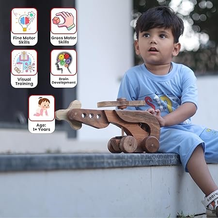 ๐ฟ DIMENSIONS: Compact size perfect for small hands, with durable wooden wheels for stable movement on flat surfaces, measurement length 36 cm, width 18 cm, height 18 cm
