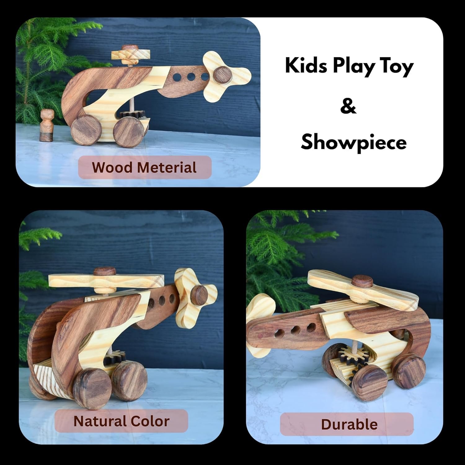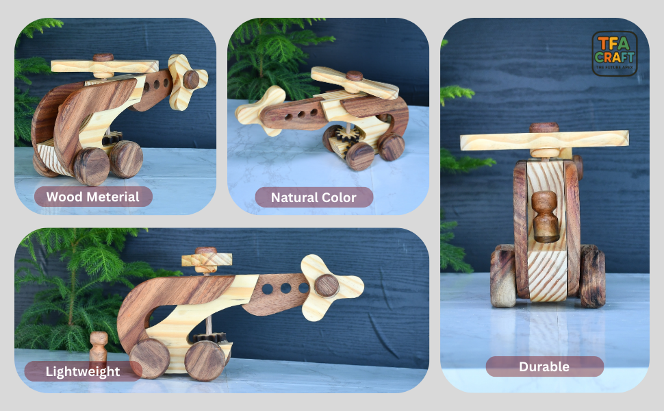 ๐ฟ HANDCRAFTED DESIGN: Beautiful wooden helicopter toy crafted with attention to detail, featuring smooth edges and natural wood finish for an authentic look